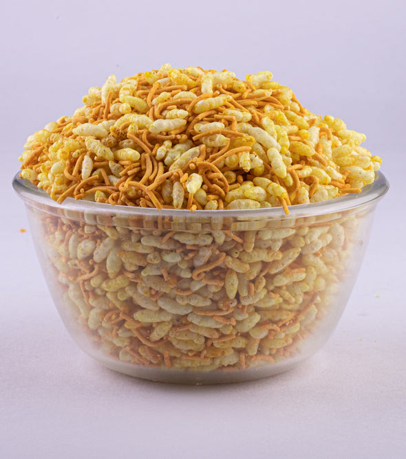 Ingredients: Gram flour,Edible oil,Iodised salt,Rice puff,Asafoetida,Spices etc.