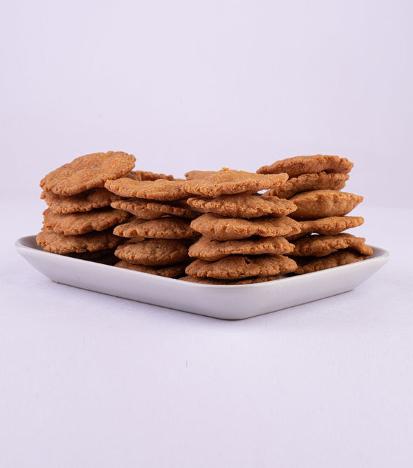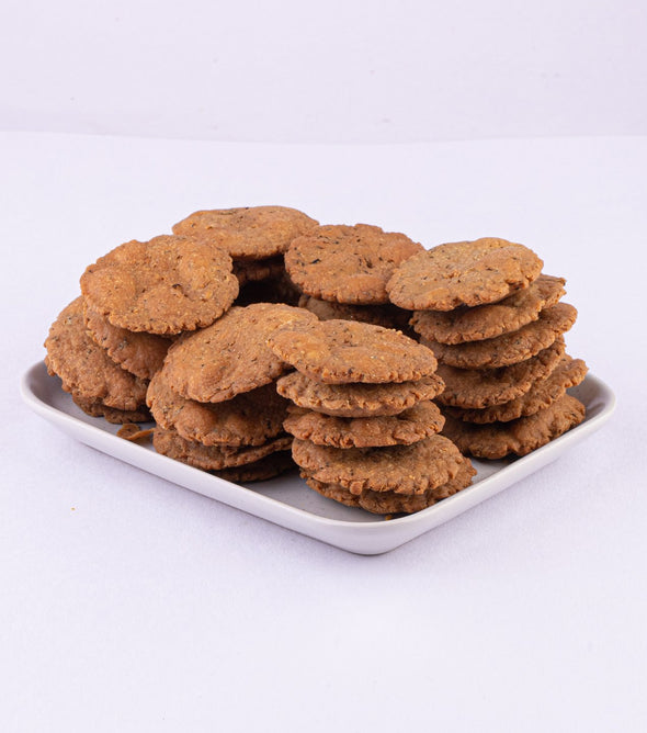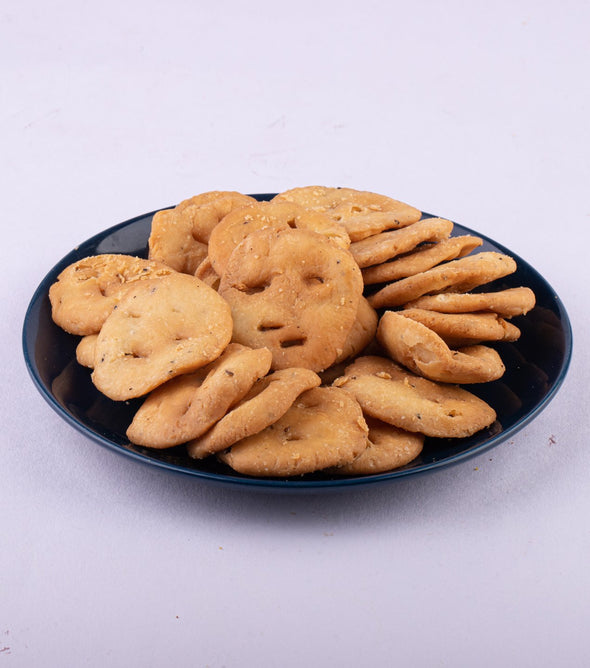 Ingredients: Flour (Rajagara + Moriaya + Samo + Singoda), Sudh Desi Ghee, Groundnut oil, Shindhav Salt, Jeera, Maria, Baking Soda